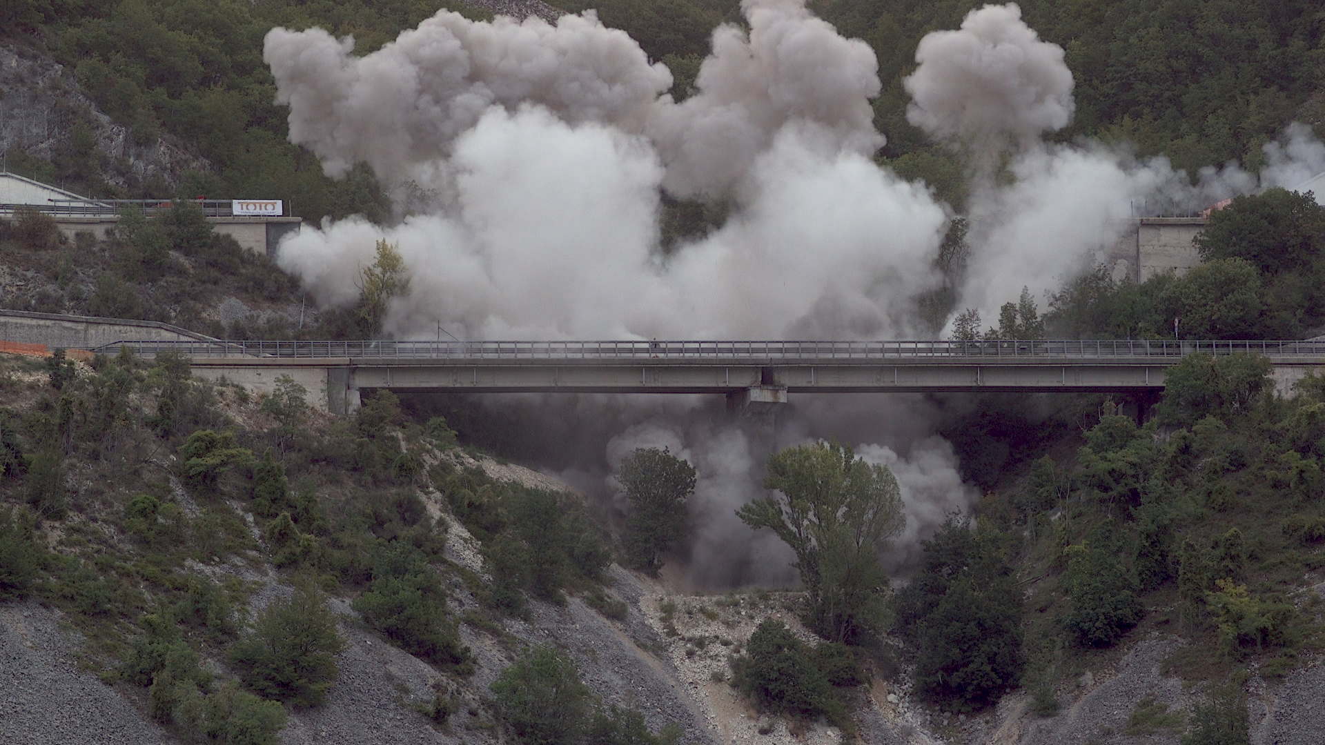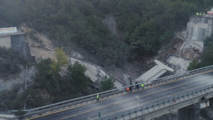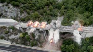 Proseguono le demolizioni di Strada dei Parchi, tra le uscite di Tornimparte e L’Aquila Ovest. Nella mattina del 26 settembre le microcariche esplosive hanno fatto brillare la carreggiata Est, in direzione Teramo, del Viadotto Cerqueta, adagiato su uno scosceso pendio roccioso nel Comune di Tornimparte, nei pressi di Villagrande. Demolizione che ha comportato, come negli altri casi, un’interruzione della viabilità sulla tratta di sole tre ore, con il traffico riaperto già dalle 9 del mattino in entrambe le direzioni, sulla carreggiata opposta.